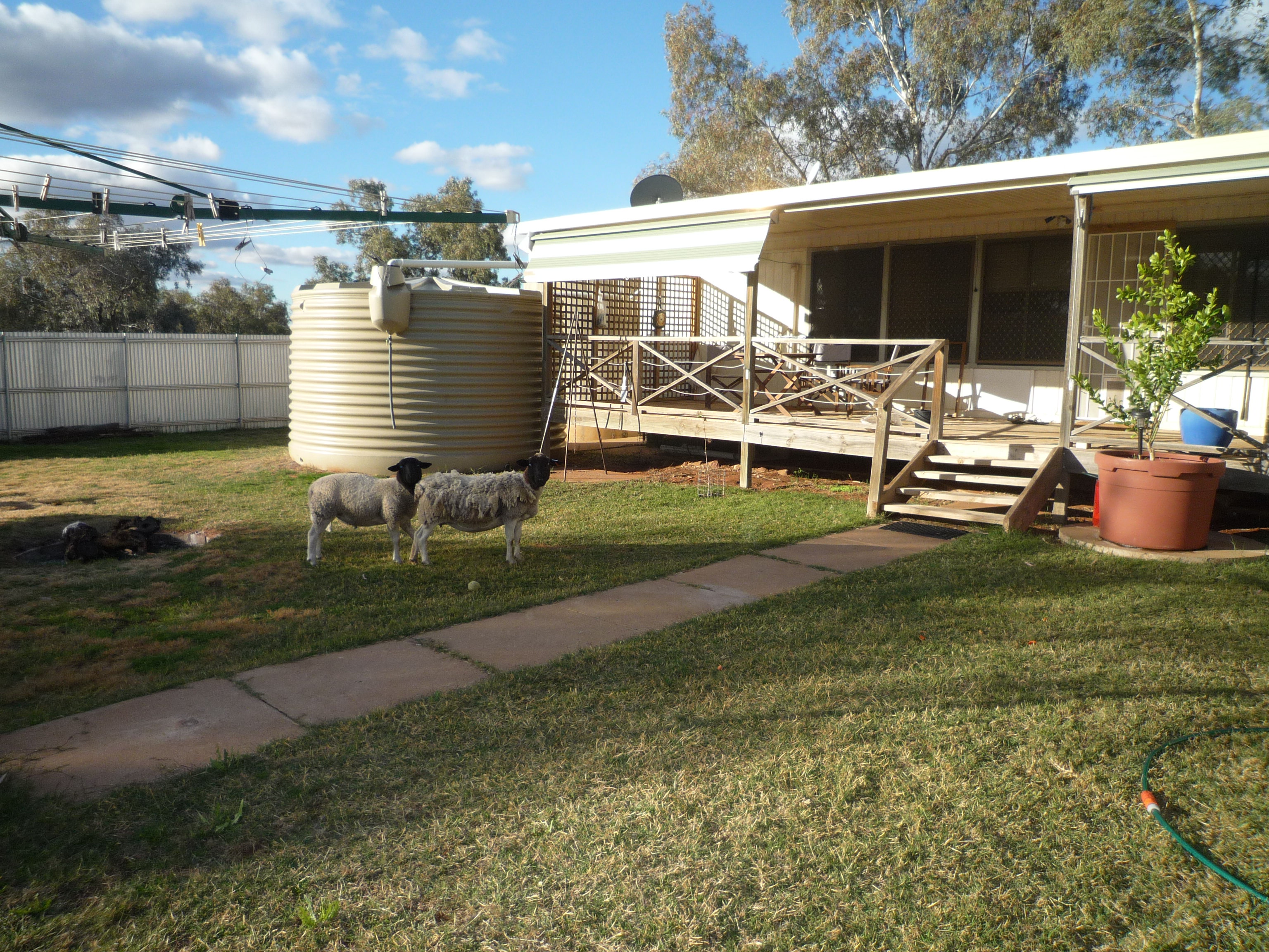 In other news, the mail contractors have today delivered 12 free bottles of Merlot and 12 free bottles of Cab Merlot, as a very generous apology from Deals Direct for the fact that Australia Post had delivered one case of wine to us here in Enngonia while sending the other case to us via Melbourne, then Bathurst and finally Kelso, which is around 700 kilometres away, where it sat and was only discovered when I decided to chase it up.