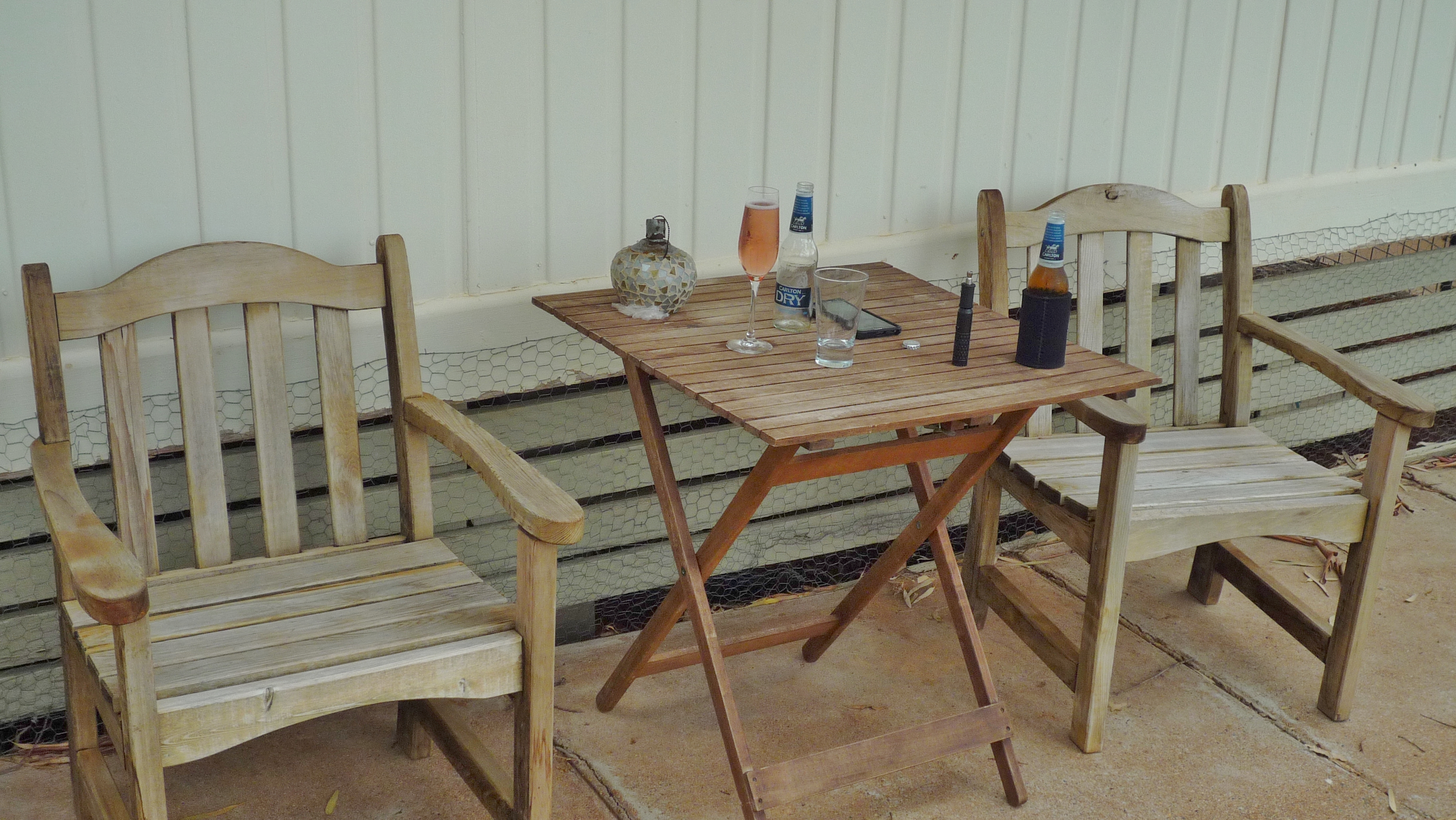 While Jed is away, we’ve taken over the upkeep of Harley and Rose and the 3 Henriettas and they’ve repaid us handsomely with 3 eggs a day and lots of whipper snipping along the fence line. Bear and Harley are becoming friends of sorts (Harley chases Bear while Bear’s chasing the ball, Bear chases Harley and Rose pretending that he’s going to attack them) and Bear seems unaware of the connection between his new friends and his ‘happy hour’ treats (Happy Hour = Champagne and beer for us, chicken necks and lamb chops for the Bear).