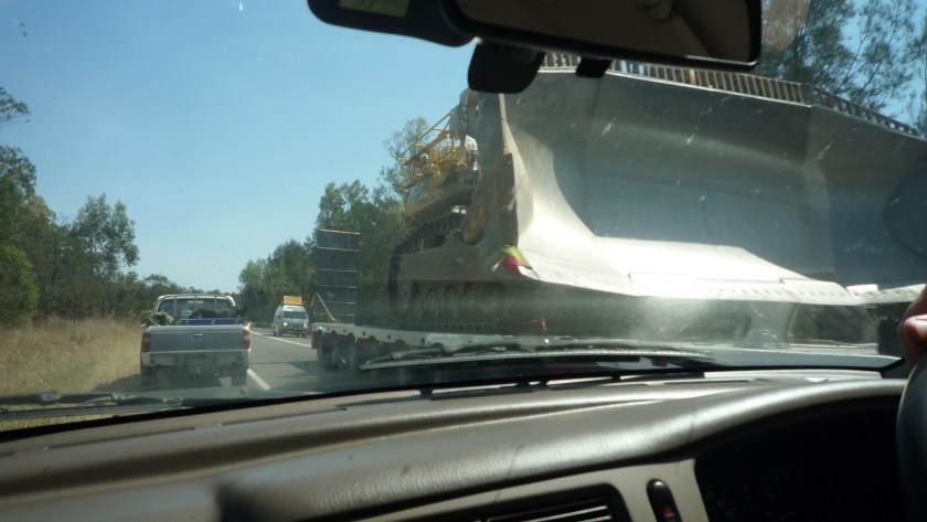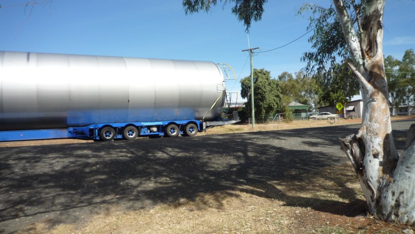 Speaking of trucks, because we’re on the Mitchell Highway we often see some spectacularly large objects being transported to and from Queensland, not to mention that trucks out here are allowed to pull three trailers…. or dogs as the locals call them.