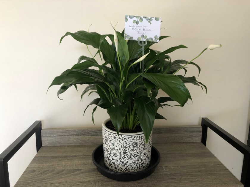 I must admit it’s sometimes hard to stay positive in the face of events and decisions outside our control. But this morning reminded me that happiness is about choices and, according to my mentor of sorts – Charles Swindoll – I have a choice between being jaded or joyful. Out of the blue (Yes, it’s finally stopped raining) a surprise gift was couriered to our doorstep, with a card that said, “Welcome to Police Bank……, Janet”.